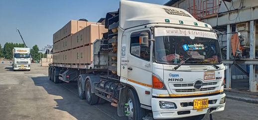 รถเทรลเลอร์พื้นเรียบ (40 ฟุต) บรรทุกรวมกันได้ไม่เกิน 50.5 ตัน โดยปกติจะขนส่งสินค้าประมาณ 32 ตัน/เที่ยว